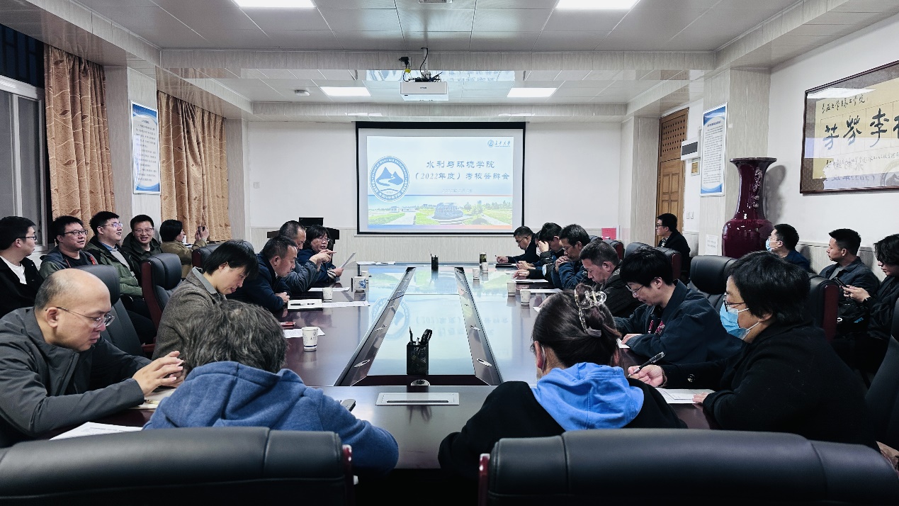 行政管理人员述职答辩评审人员由学院领导班子、系室(中心)主任、教师党支部书记组成。全体行政管理人员依次结合本人工作职责,从德、能、勤、绩、廉五个方面对本人2022年度履职情况及不足之处做了简要介绍。评审人员根据工作职责及工作完成情况,本着全面、客观、公正的原则对行政管理人员进行了考核评价。