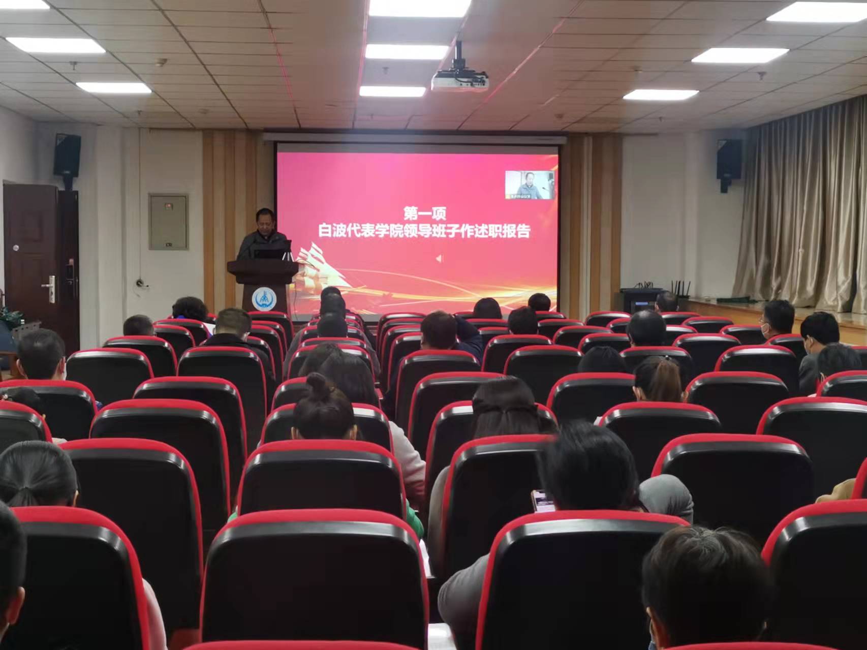院长白波代表学院领导班子述职,围绕加强党的全面领导,加强人才培养顶层设计,完善高质量教学体系,提升校企合作和社会服务实效,扎实开展疫情防控工作等方面对学院2021年工作进行了全面的总结,客观分析了工作中存在的问题和不足,并提出了改进思路和主要举措。学院领导班子全体成员对照各自岗位职责分别进行了个人述职,对个人一年来的工作成果与业绩进行总结,对工作中存在的问题与不足进行了剖析。