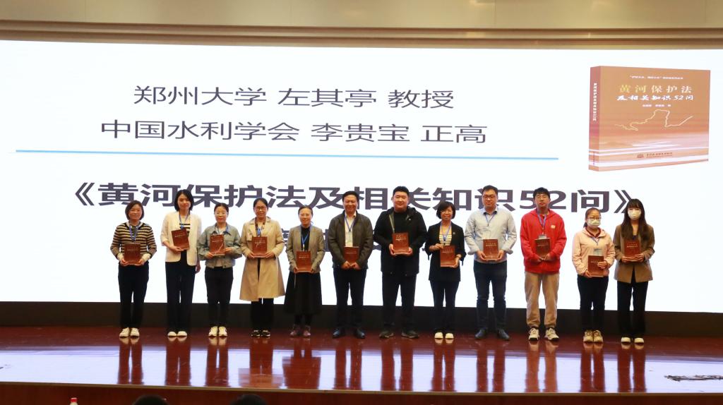 水利部旱区生态水文与水安全重点实验室主任张洪波主持了中国自然资源学会水资源专业委员会主任、全国高校黄大年式教师团队负责人、全国优秀科技工作者左其亭教授等主编的《黄河保护法及相关知识52问》的新书发布会。左其亭教授和水利水电出版社范东阳编辑分别介绍了新书内容和出版过程,并为与会代表赠送样书。