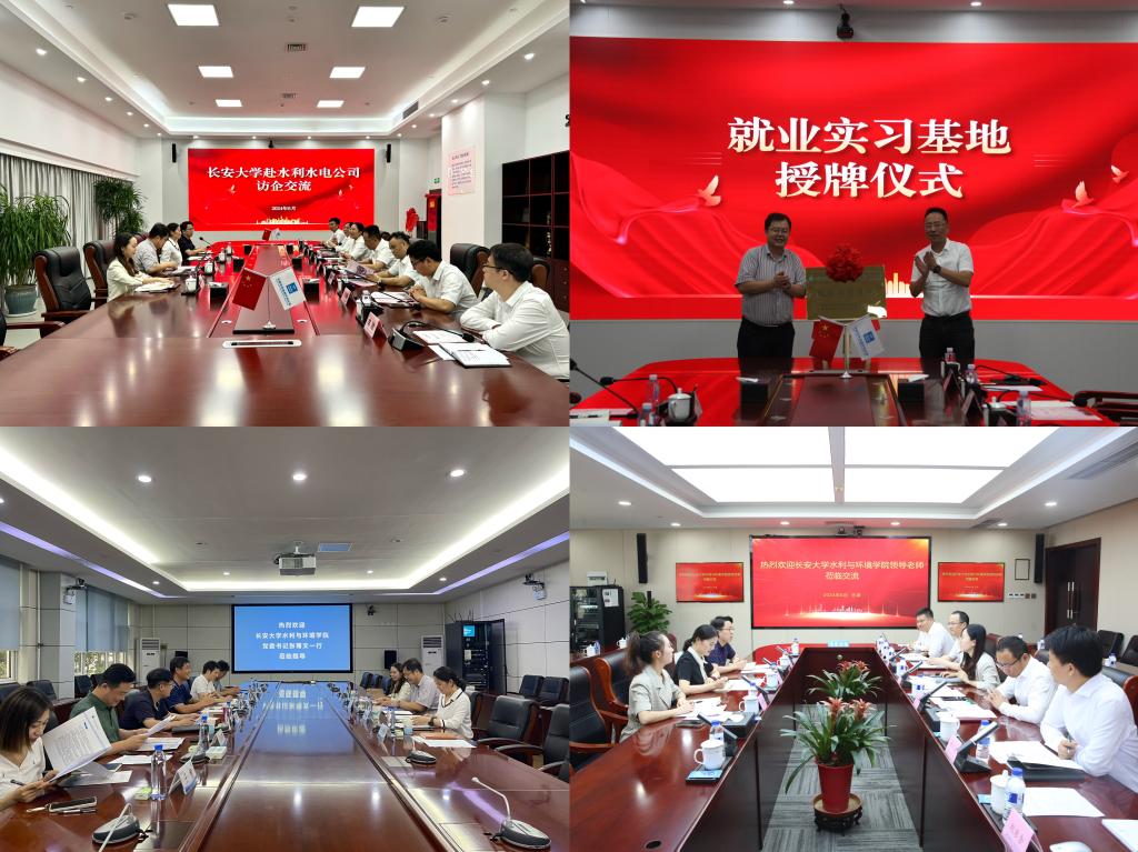 张骞文从历史沿革、学科建设、人才培养、科学研究等方面向各用人单位简要介绍了学校和学院的总体情况。他对各单位的热情接待和长期以来的支持表示感谢,希望校企双方在人才供需、科研合作、实习实践等方面加强交流合作,共同探索校企协同育人模式,深入推进毕业生高质量充分就业。张骞文与中建六局水利水电公司党委副书记王天亮共同为双方共建的就业实习基地揭牌。