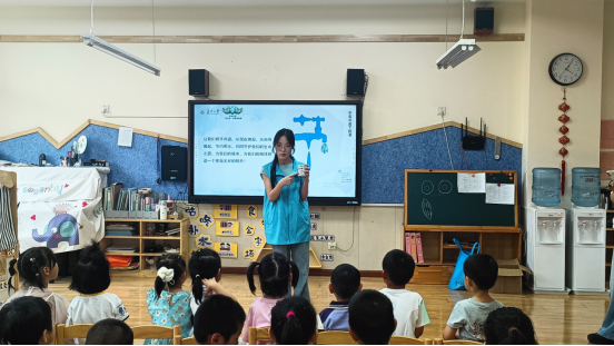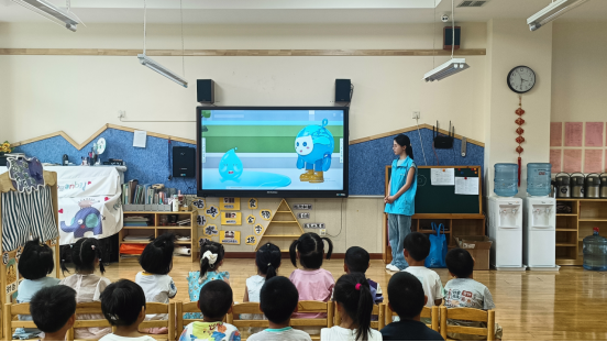 活动以刘扬的环保故事引入主题,将思政教育融入生态科普,用童言童语阐释水资源保护的重要性。志愿者团队以“水知识科普+沉浸式互动”为核心,为孩子们开启了一场生态启蒙之旅:从地球“蓝色星球”的奥秘到生活中“一水多用”的实践,用童言童语讲述水循环故事;结合西安护城河再生水利用的实地案例,以动画演示“一滴水的旅行”,将抽象知识转化为可触可感的生动场景。